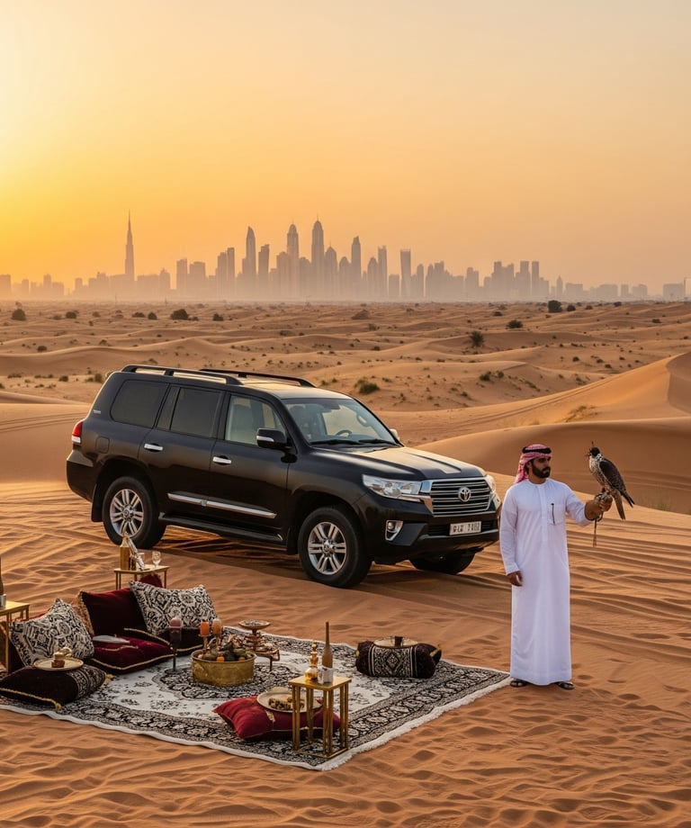 Ride into the golden dunes with thrilling safaris, cultural shows, BBQ dinners, and private setups.