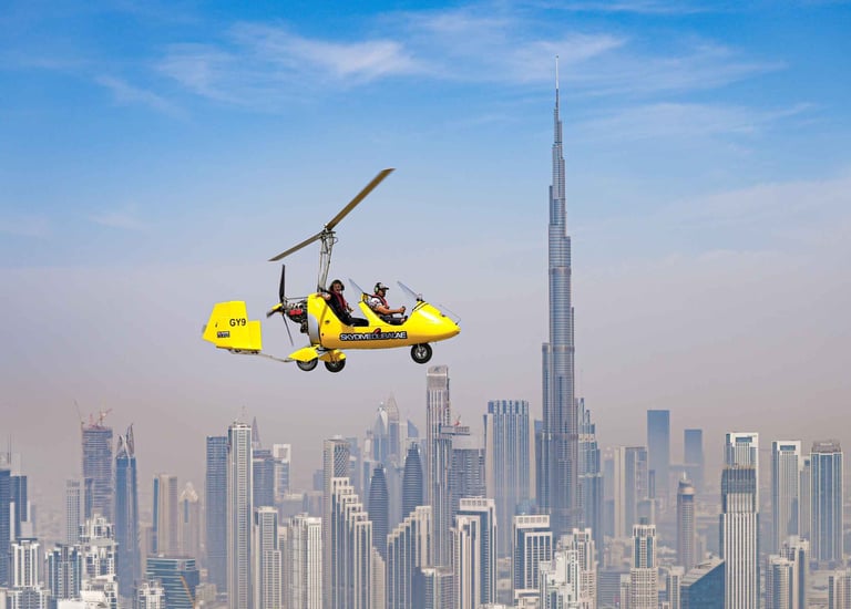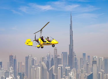 Unlike standard helicopter tours, the Skyhub gyrocopter offers a solo flying experience with a professional pilot in a two-seater aircraft. Fly at 1,500 ft above Dubai’s coastline with an open cockpit—perfect for thrill-seekers and adventure lovers.