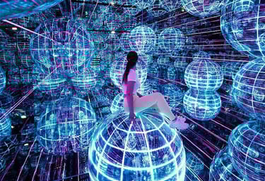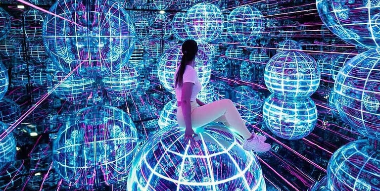 A futuristic, story-driven digital light universe with 12 themed rooms of immersive installations.