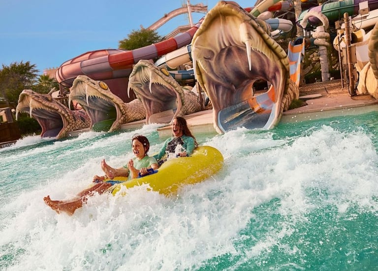 Middle East's largest waterpark with 105+ slides, rides, and private beaches — perfect for families and thrill-seekers.