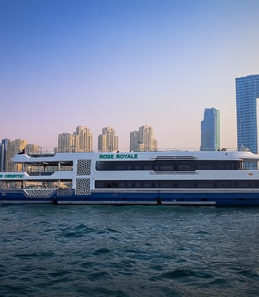 Experience Dubai Marina, JBR, Bluewaters and Palm Jumeirah aboard shared luxury yachts designed for comfort and panoramic sightseeing. Enjoy soft beverages, breakfast (for morning tours), live crew assistance, onboard Wi-Fi, and virtual guiding.