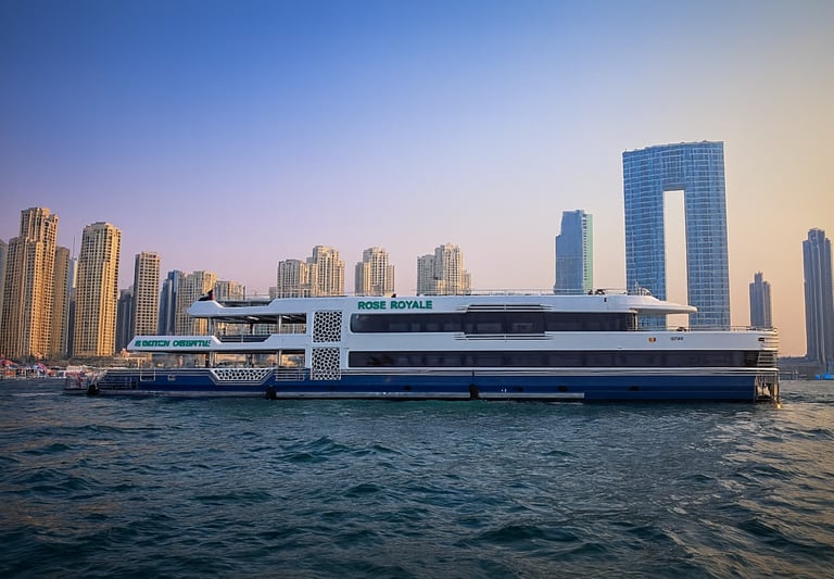 One of Dubai’s largest dining yachts with global cuisine, live cooking counters, and multi-level entertainment.